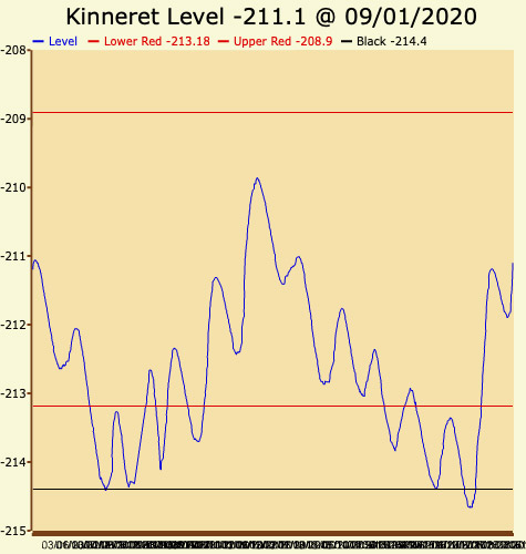 "As of Thursday morning, the Sea of Galilee had risen by 23 centimeters (approximately nine inches) in a 24-hour period, and was at 211.1 meters below sea level, 2.3 meters from it’s fullest level.